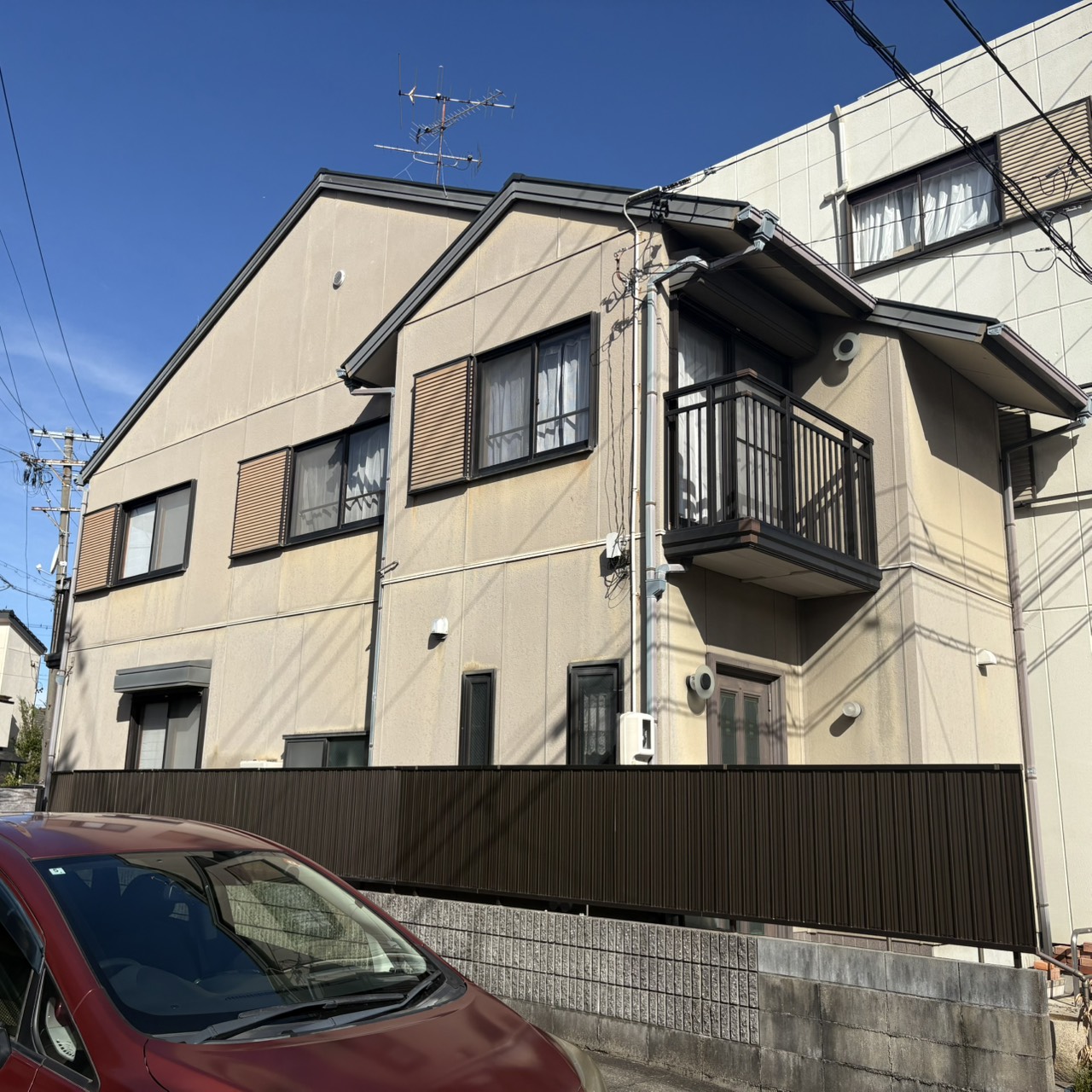 外壁の仕上がり感を向上させるために外壁の下塗り材料を2種類、2工程に分けて行い塗料の厚みがでてバッチリ仕上がりました。